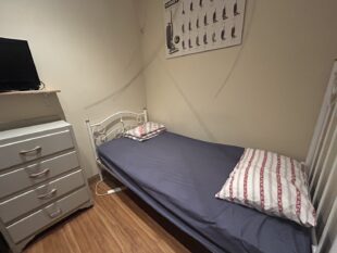 この部屋は新しい家具全般揃っていますので揃える必要がありません。部屋にはキングシングルベッド、デスク、ライト、Walk-in ワードローブなどをそろえています。