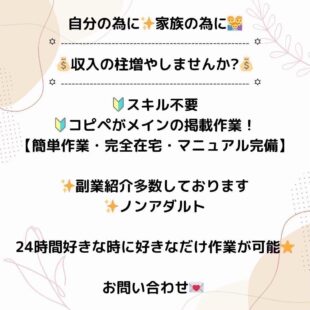 ○活動時間はご自身の出来る時間帯で大丈夫です。長期的にお付き合いできる方で、 業務連絡をとれる方を希望。