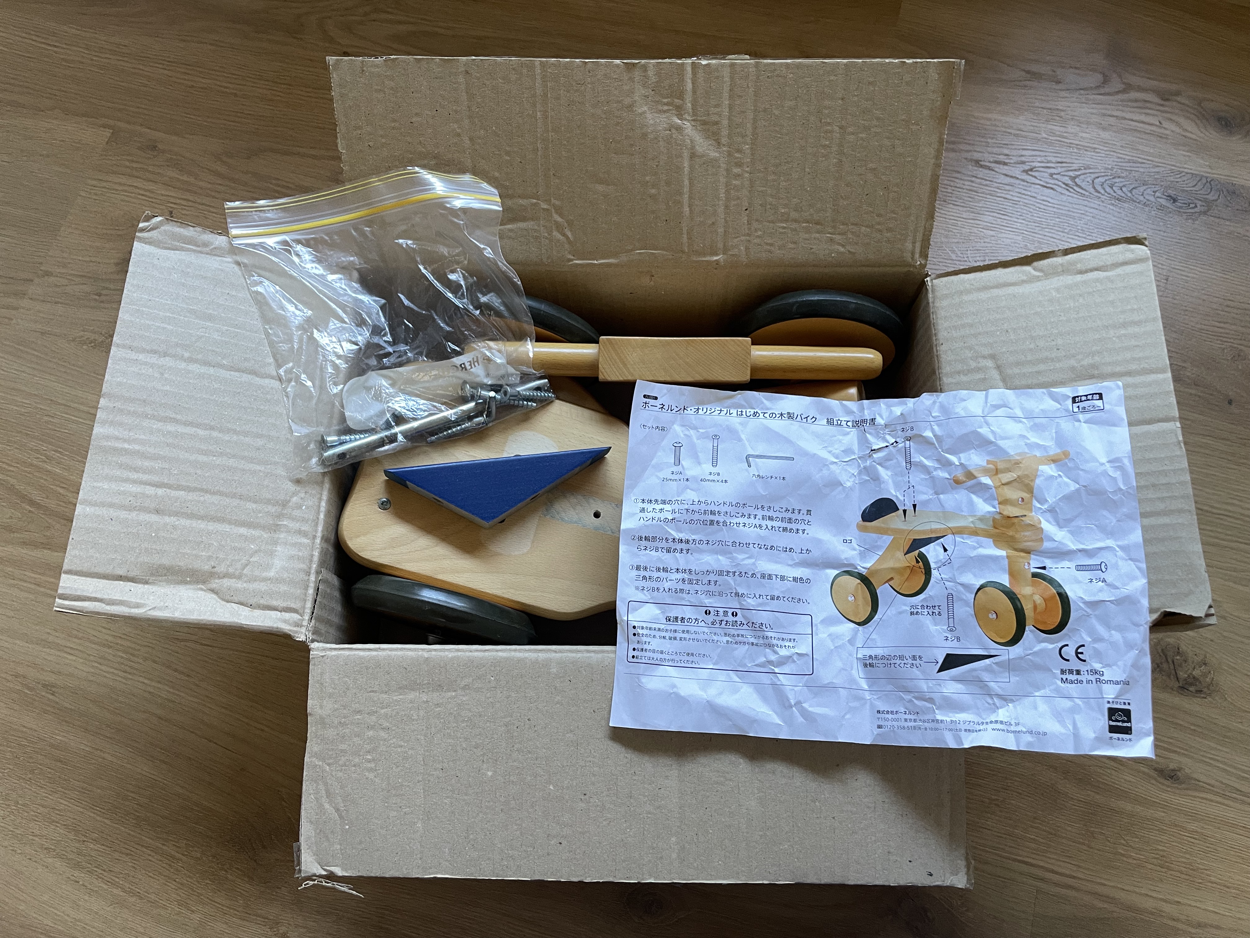 組み立て説明書、ネジ、六角レンチもすべて箱に入れてお渡しします。