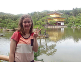 I was there on a study tour, so for one week we went to school with our host students. The other week was spent seeing the sights of Japan. We stayed in Tokyo first. I saw Mt. Fuji, Kaminarimon and Tokyo Tower. We went to Hiroshima to see the Atomic Bomb Dome, the Peace Museum, and Miyajima. We also spent time in Kyoto visiting the many temples and other historical buildings there, such as Nijo Castle, Kiyomizu-dera, and Kinkaku-ji.