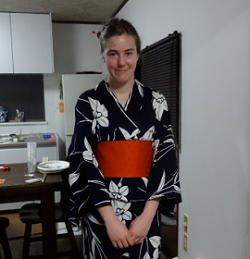 I remember a party held at my host family's house. Some people that I didn't even know gave me presents and were very nice to me, and I got to dress up in a yukata. We drank Orangina (a French soda), lit fireworks, and ate lots of food. It was a really fun night.