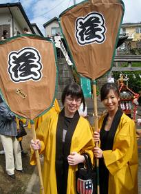 A friend of mine invited me and my co-worker to her neighbourhood mikoshi (portable shrine) festival. We all dressed up in the happi coats of the neighbourhood and helped carry around the local shrine's mikoshi. Everyone was friendly and welcoming, and the day was a blast. I couldn't believe quite how long and intensive the mikoshi-carrying was. For many of the guys doing it, it was their second day and some of the newer guys were bleeding by the end of it! However, everyone got the chance to drown their pain with the most exuberant drinking party I think I've ever seen. It got a bit surreal. For example, the local politician (who had been making a solemn welcoming speech twenty minutes earlier) ended up jumping on the table while swigging from an enormous bottle of shochu. There was dancing, sushi and lots of joking around. It was good fun.