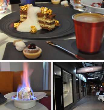 一見、バーかと思わせるが、実はシックなデザートラウンジ。もちろん外観通りアルコールも飲める。一押しのBombe Alaska ($14) は、メレンゲの中にホワイトチョコレートアイスクリームとラズベリーソースが入っていて、その場でラム酒をかけフランベしてくれる。"フワ"、"サク"のメレンゲとアイスクリームが溶け合い、口の中でサッと消えていく。すぐにもう一口! といきたくなる味だ。Banana Bread, Caramel Popcorn Ice-Cream Millefeuille ($12)はキャラメルポップコーンの味がしっかりと味わえるアイスケーキ。スポンジの間に挟まっているアイスクリームが口の中でホロリとなくなる。店員はスーツを着こなし、メニューは全てデジタル化。新しい物好きな人はぜひ試してもらいたいお店。
