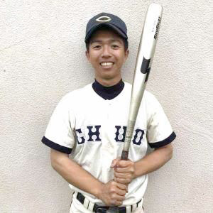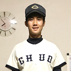 ①兵庫県 ②報徳学園高校 ③二塁手 ④3年(21歳) ⑤165cm/65kg ⑥右投左打 ⑦中大らしく、攻守ともに泥臭く、積極的なプレーで、勝利に貢献します!