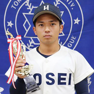 ①Commonwealth of Massachusetts Boston ②慶應義塾湘南藤沢高等学校 ③捕手 ④2年(20歳) ⑤173cm/68kg ⑥右投右打 ⑦自慢の肩で盗塁を阻止(2季連続で東京六大学準硬式野球連盟ベストナインに輝き、関東選抜にも選出されました)