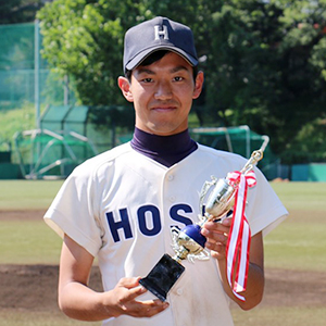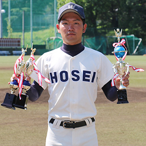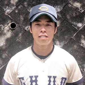 ①東京都 ②慶應義塾高等学校 ③外野手 ④3年(21歳) ⑤170cm/82kg ⑥右投左打 ⑦強肩強打のセンターフィールダー。鍛え上げた身体から放たれる打球はあっという間に外野の頭を越えていく。(今季リーグ戦5本の本塁打を放ち、本塁打王に輝きました)